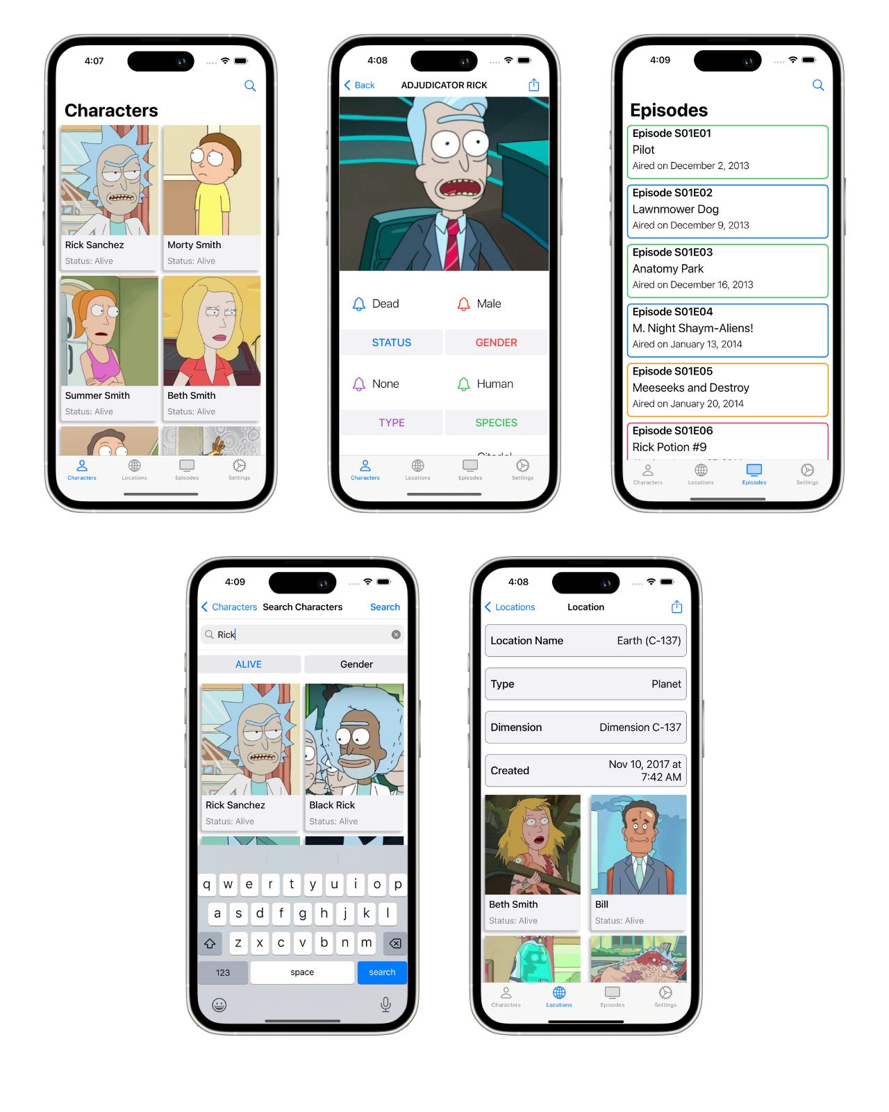 Swift Rick & Morty Universal Application